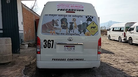 Morelia, Michoacán (MiMorelia.com).- Algunas combis de la Ruta Gris promueven la adopción de perritos en Morelia, a la vez que pidieron no atropellar a estos animalitos.