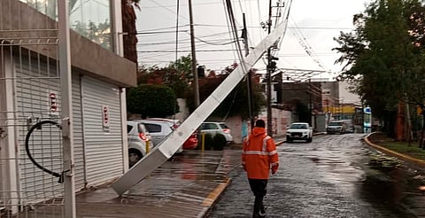 Morelia, Michoacán (MiMorelia.com).- Tras la fuerte lluvia registrada este miércoles en la ciudad de Morelia, personal de la Coordinación Estatal de Protección Civil retiró un anuncio publicitario que colapsó sobre la avenida Camelinas, obstruyendo la vialidad y generando riesgo para automovilistas y peatones.