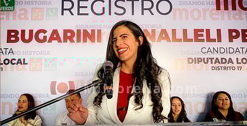 Durante un mitin político, Giulianna Bugarini, mencionó colaborar especialmente con las mujeres compañeras de la coalición Sigamos Haciendo Historia, a partir del arranque de las campañas locales.
