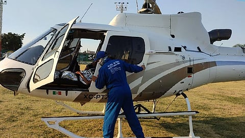 Morelia, Michoacán (MiMorelia.com).- Personal de la Dirección de Servicios Aéreos, de la Secretaría de Seguridad Pública (SSP), trasladó de Sahuayo a Morelia a un paciente, mismo que requería atención médica inmediata a consecuencia de una serie de quemaduras de tercer grado.