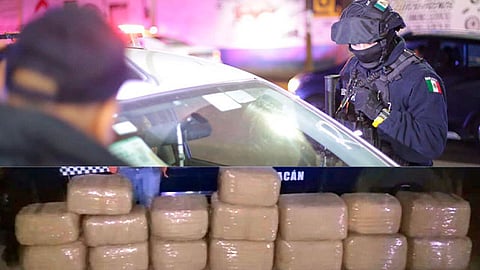 Acuitzio, Michoacán (MiMorelia.com).- Derivado del reforzamiento operativo del Blindaje Morelia en tenencias, localidades y municipios aledaños, personal de la Secretaría de Seguridad Pública (SSP), detuvo a un hombre con un vehículo en el cual transportaba varios paquetes que contenían aproximadamente 160 kilos de marihuana.