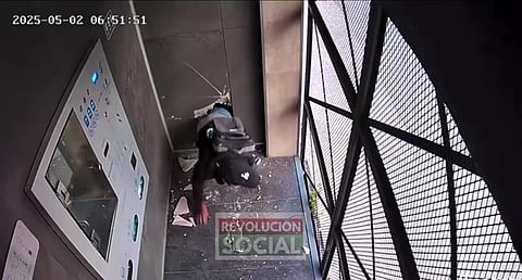 En la grabación se observa a uno de los individuos intentando salir de un agujero, posteriormente intenta salir por la puerta con dificultad, ya que esta contaba con candados, por lo cual su cómplice lo ayuda. Ambos huyen rápidamente del sitio.