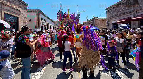 Fue aproximadamente a las 11:30 horas cuando salieron de la calzada San Diego para llegar al primer cuadro de la capital michoacana, durante su paso se apreciaba el ambiente de fiesta que contagiaban a los asistentes con las danzas del torito, así como sus acompañantes las mariguillas, los apaches y caporales.