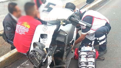 Morelia, Michoacán (MiMorelia.com/RED 113).- Una joven motociclista quedó herida levemente en un choque contra un camión revolvedora, accidente registrado la mañana de este martes en el Libramiento de esta capital.