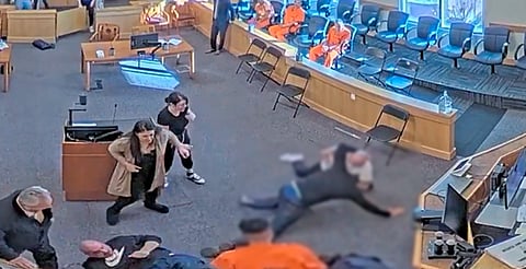El incidente ocurrió en días recientes durante una audiencia de declaración de culpabilidad. En un video difundido en redes sociales se observa cómo un hombre salta la barrera del tribunal y se lanza contra Ortiz, de 21 años, quien intenta huir.