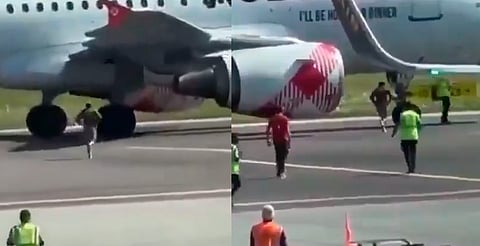 De acuerdo con las autoridades italianas, el hombre forzó la entrada a la pista de aterrizaje y, pese a los intentos del personal por detenerlo, logró acercarse a la turbina derecha del avión, justo en el momento en que este realizaba la maniobra de retroceso.