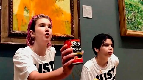 El grupo Just Stop Oil compartió la grabación donde se ve a ambas jóvenes aventando la sopa de tomate, y en la publicación agregaron que en el museo se exhibe la creatividad y brillantez humana, pero mientras se cuida el arte en la galería, el patrimonio del mundo está siendo destruido por la incapacidad del gobierno para actuar sobre la crisis climática.