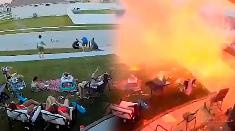 Los hechos quedaron captados en video y muestran cuando toda la familia, se encontraba sentada sobre el pasto, cuando el alcance de las chispas se salió de control.