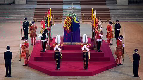Reino Unido (MiMorelia.com).- La mañana de este miércoles los restos de la reina Isabel II llegaron al Palacio de Westminster, en Londres luego de pasar la noche en el Palacio de Buckingham con la familia real.