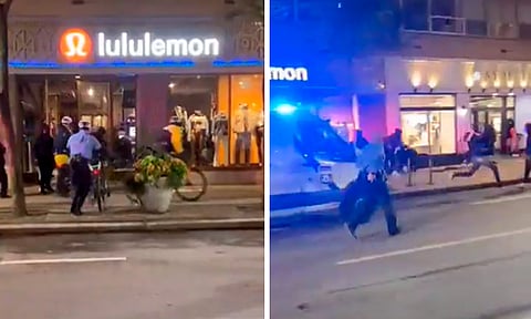Las tiendas que fueron saqueadas son Apple, Lululemon y Footlocker. Además "Meatball" se burló de haber tomado una botella de cognac.