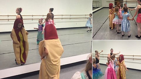 Estados Unidos (MiMorelia.com/ Dani Morales).- Ainsley, originaria de Carolina del Norte, sorprendió a sus compañeras de la escuela de baile Holly Springs School of Dance cuando durante un concurso de disfraces de princesas, ella acudió vestida de hot dog.