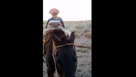 En los videos que compartió la maestra se ve al pequeño sobre su caballo mientras le enseña las tareas que ha hecho, así como el paisaje que lo rodea y al animal que lo lleva hasta el cerro.