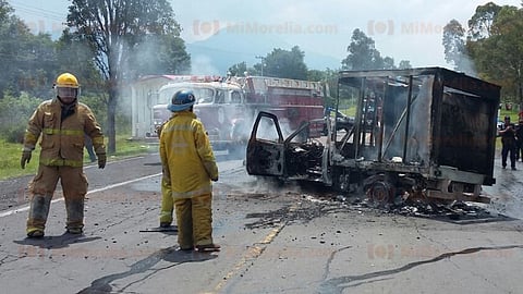 Zacapu, Michoacán (MiMorelia.com).- Un grupo conformado al parecer de estudiantes normalistas y de integrantes de la Coordinadora Nacional de Trabajadores de la Educación (CNTE), incendiaron al menos tres vehículos sobre la carretera Coeneo-Zacapu.