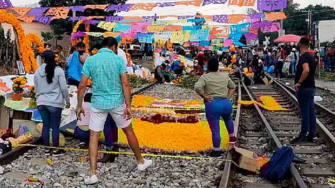 Morelia, Michoacán (MiMorelia.com).- Egresados normalistas que mantienen bloqueadas las vías del tren de la comunidad de Caltzontzin de Uruapan montaron seis ofrendas alusivas a la celebración de muertos como parte de las actividades de protesta programadas para este mes.