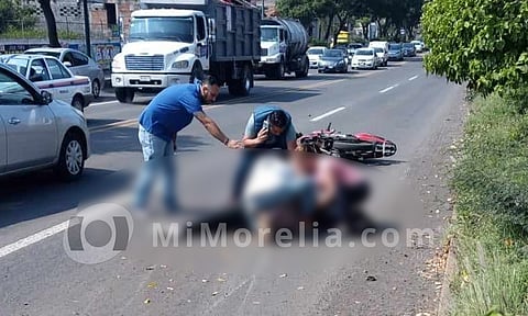 Morelia, Michoacán (MiMorelia.com).- Una mujer resultó herida tras el derrape de una motocicleta sobre la avenida Madero Poniente de Morelia, informaron autoridades policiales.