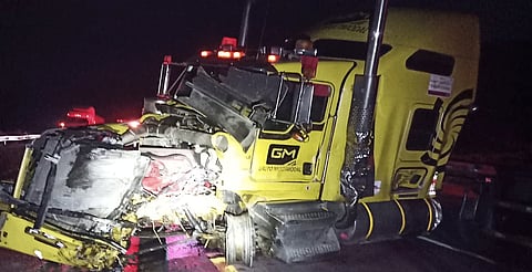 De acuerdo con el reporte oficial, al arribar la unidad de auxilio vial, se confirmó el impacto entre ambas unidades de carga. Aunque dos personas fueron valoradas por paramédicos, se determinó que no presentaban lesiones.