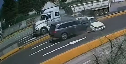 En el metraje, se observa cómo un camión de carga impacta por detrás a un Volkswagen Jetta blanco, lo que provoca que este invada el carril contrario y sea embestido frontalmente por una camioneta Honda Odyssey.