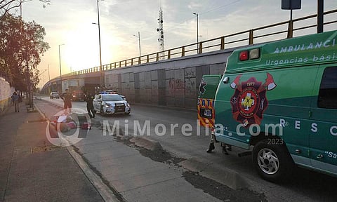 Morelia, Michoacán (MiMorelia.com).- Un motociclista resultó malherido tras ser atropellado por un vehículo de características desconocidas esto sobre una de las laterales de la avenida Madero Poniente, en Morelia.