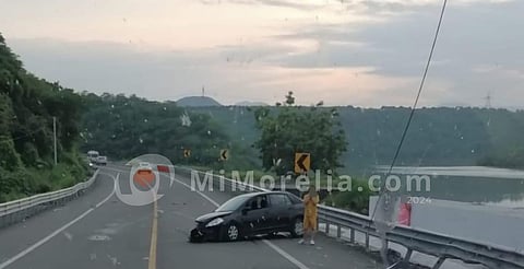 Gabriel Zamora, Michoacán (MiMorelia.com).- Un vehículo compacto impactó contra la barrera metálica de contención en las inmediaciones del kilómetro 148 de la autopista Siglo XXI, donde según las corporaciones de auxilio únicamente se reportaron daños materiales.