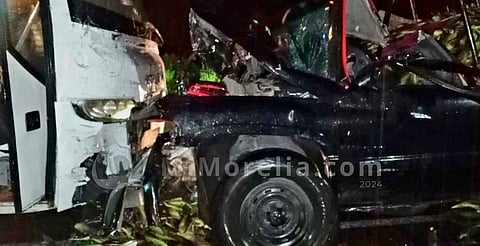 Morelia, Michoacán (MiMorelia.com).- Tres personas que viajaban en una camioneta resultaron lesionadas de gravedad al chocar de frente contra un autobús de turismo sobre la carretera Uruapan-Los Reyes, cerca de la comunidad indígena de Angahuan.