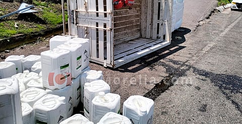 Gabriel Zamora, Michoacán (MiMorelia.com).- Una camioneta que trasladaba productos químicos para el campo, volcó a unos metros de la caseta de cobro de Santa Casilda, en la autopista Siglo XXI, sin que por fortuna se reportaran personas heridas.