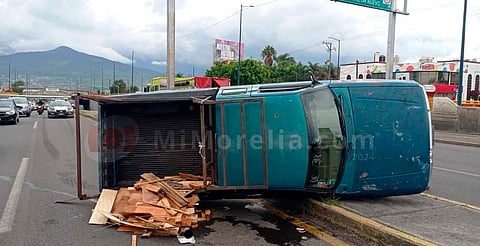 Morelia, Michoacán (MiMorelia.com).- La tarde de este domingo se registró la volcadura de una camioneta sobre el Periférico Paseo de la República, al norte de Morelia, la cual dejó solo daños materiales, informaron autoridades policiales y de rescate.