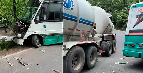 En imágenes obtenidas por este medio, se observa que el camión de pasajeros resultó con daños visibles en la parte frontal, mientras que la pipa, presenta daños menores.