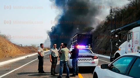Arteaga, Michoacán (MiMorelia.com).- Dos tráileres se impactaron en la autopista Siglo XXI, a la altura de este municipio de Arteaga, tras lo cual uno de ellos que iba cargado con gasolina se incendió, donde quedó totalmente bloqueada la circulación.