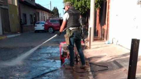 Los visuales muestran a hombres armados, quienes con agua a presión y escobas limpiaron la calle de la localidad ubicada en los límites con Jalisco.