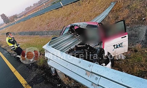 Álvaro Obregón, Michoacán (MiMorelia.com).- Dos muertos y cuatro heridos dejó el choque de un taxi de la Ciudad de México contra una barrera metálica de contención ubicada a la orilla de la autopista México-Guadalajara.