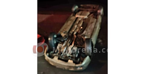 Ziracuaretiro, Michoacán (MiMorelia.com).- La noche de este domingo un vehículo particular volcó sobre la autopista Siglo XXI y terminó con las llantas hacía el cielo, afortunadamente una familia que viajaba a bordo resultó ilesa, según confirmaron fuentes de rescate.