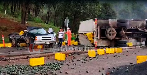 A su arribo, los socorristas confirmaron el deceso de una persona que se encontraba a bordo de un vehículo de color rojo que terminó convertido en chatarra tras el choque contra un camión que transportaba aguacate, el cual acabó volcado; también participó otro camión de carga, un Mazda azul y una camioneta Chevrolet, pick-up, de color negro en la que viajaba una cuadrilla de cortadores de aguacate.