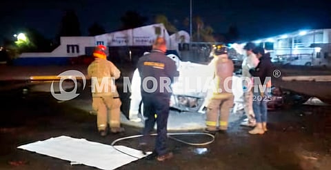 Morelia, Michoacán (MiMorelia.com).- Una persona murió calcinada y otra resultó lesionada tras la volcadura de un vehículo, el cual ardió en llamas en el Periférico Paseo de la República, al poniente de Morelia, informaron autoridades policiales.