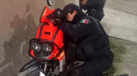 Los agentes realizaban labores en la calle Eduardo Ruiz de la colonia Centro, sitio donde ubicaron una motocicleta que era operada sin placas de circulación y sin luces, por lo que se le marcó el alto, orden que no fue acatada por el implicado.