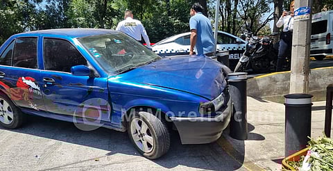 Morelia, Michoacán (MiMorelia.com).- Un sujeto que robó un automóvil Nissan Tsuru chocó contra un poste metálico tras ser perseguido por elementos del Agrupamiento Tigre, esto en Morelia, informaron autoridades policiales, las cuales agregaron que el sospechoso escapó.