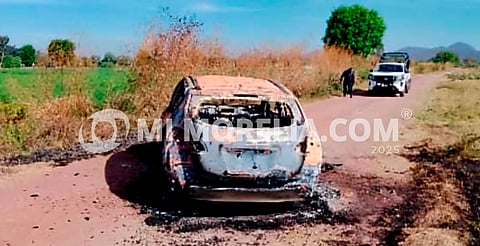 Álvaro Obregón, Michoacán (MiMorelia.com).- Oficiales de la Policía Municipal que realizaban patrullajes en una brecha de Álvaro Obregón localizaron un vehículo totalmente calcinado y con impactos de bala. En la zona se aseguraron decenas de casquillos percutidos de arma larga.
