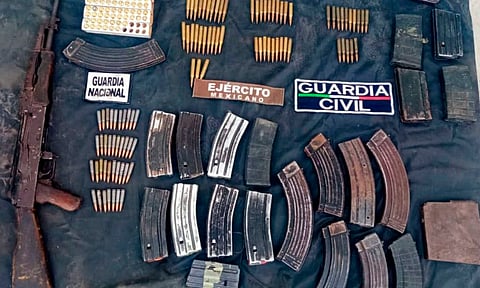 Al verificar los antecedentes de la unidad, confirmaron que cuenta con reporte de robo, asimismo al revisar su interior aseguraron un rifle AK-47, con un cargador y 14 cartuchos útiles, además de nueve cargadores calibre 223, ocho cargadores de calibre 7.62X39, cinco cargadores para 7.62X51 y un cargador para calibre 50.