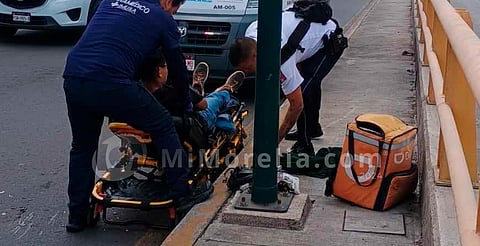 Al enterarse de la emergencia, unos paramédicos acudieron al sitio de los hechos y le otorgaron los primeros auxilios al motorista de aproximadamente 24 años de edad, quien afortunadamente no padeció daños de gravedad y no quiso ser trasladado a un hospital.