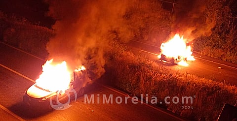 Morelia, Michoacán (MiMorelia.com).- Presuntos normalistas incendiaron tres vehículos en las cercanías de la carretera Morelia-Pátzcuaro, entre ellos una patrulla de la Policía Morelia, hecho que se derivó de una persecución entre policías y aparentes ladrones de un automotor, informaron fuentes allegadas al tema.