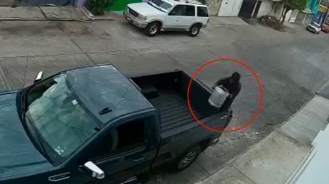 De acuerdo a la denuncia, el robo se dio en la colonia San Rafael de esta ciudad capital. En el video, el sujeto se acerca en un primero momento a la camioneta donde está la olla, desiste y se aparta unos metros del lugar.