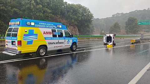 La volcadura ocurrió en condiciones de pavimento mojado, por lo que se cree que la lluvia pudo haber sido un factor en el accidente.