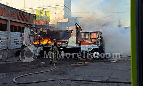 Morelia, Michoacán (MiMorelia.com).- La tarde de este domingo camión de carga ardió en llamas en las inmediaciones del mercado de abastos de esta capital michoacana.
