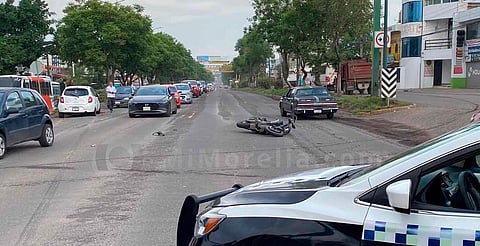 Morelia, Michoacán (MiMorelia.com).- Un motociclista resultó herido tras ser embestido por un automovilista sobre la avenida Francisco I. Madero Poniente de Morelia, informaron autoridades policiales.