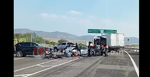 Morelia, Michoacán (MiMorelia.com).- Este jueves por la tarde se registró un fuerte choque en la autopista Morelia - Salamanca, a la altura de Cuitzeo
