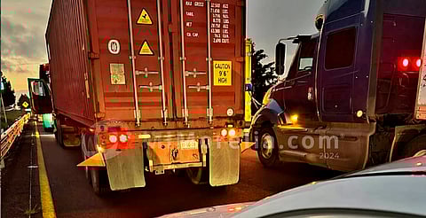 Posteriormente, un camión tipo volteo se salió de la carpeta asfáltica y se proyectó a un pequeño desnivel en las obras de ampliación de la autopista, a la altura del kilómetro 80, en las cercanías de las Huertas de Jujucato.