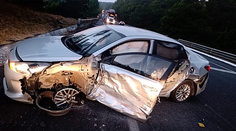 De acuerdo a primeros reportes, el hecho de tránsito se dio a la altura del kilómetro 74+000 del tramo Pátzcuaro-Uruapan, cuando el tráiler de color rojo impactó al vehículo compacto de color gris.