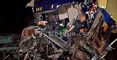 Por lo anterior, al lugar se movilizaron los Bomberos de Rescate Uruapan I.A.P., mismos que encontraron al chofer de un tráiler International de color azul, atrapado entre los escombros, por lo que realizaron las maniobras para liberarlo.