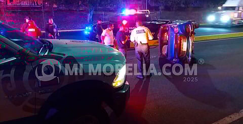 Morelia, Michoacán (MiMorelia.com).- Un automóvil volcó en una de las rampas para acceder del libramiento a la Calzada La Huerta y viceversa, hecho que ocurrió la noche de este viernes cerca de los fraccionamientos La Huerta y Morelia 450.