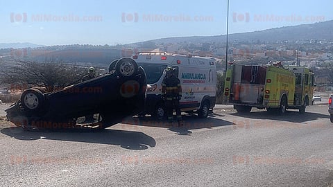 Morelia, Michoacán (MiMorelia.com).- En la zona oriente de Morelia, un vehículo volcó y sus tres ocupantes, entre ellos dos menores, sufrieron leves contusiones, informaron fuentes policiales y de rescate.