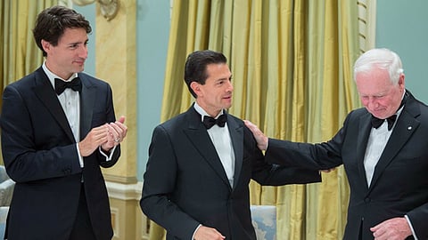 "México y Canadá son respectivamente el tercer socio comercial para el otro país, nuestras universidades y colegios participan en numerosos intercambios y estamos fomentando constantemente la cooperación entre nuestros gobiernos e instituciones", dijo el gobernador de Canadá.